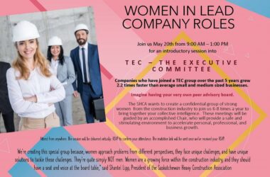 TEC – THE EXECUTIVE COMMITTEE Companies who have joined a TEC group over the past 5 years grew 2.2 times faster that average small and medium sized businesses. Imagine having your very own peer advisory board. The SHCA wants to create a confidential group of strong women from the construction industry to hoin us 6-8 […]