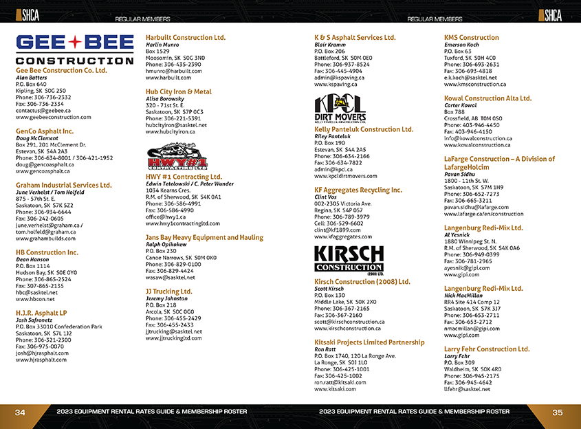 The 2023 SHCA Equipment Rental Rates Guide and Membership Roster is currently at the printer, with mailing expected to begin at the end of March.