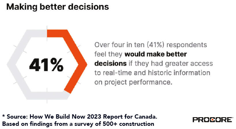 Other findings revealed that almost half of all projects go over budget and over schedule, and over 30 per cent of respondents identified needing new technology to improve operational efficiency and cost controls amid economic volatility. In fact, paper remains a common medium for Canadian construction decision-makers. About a quarter of respondents still use paper-based records or non-digital processes as part of their workflows.
