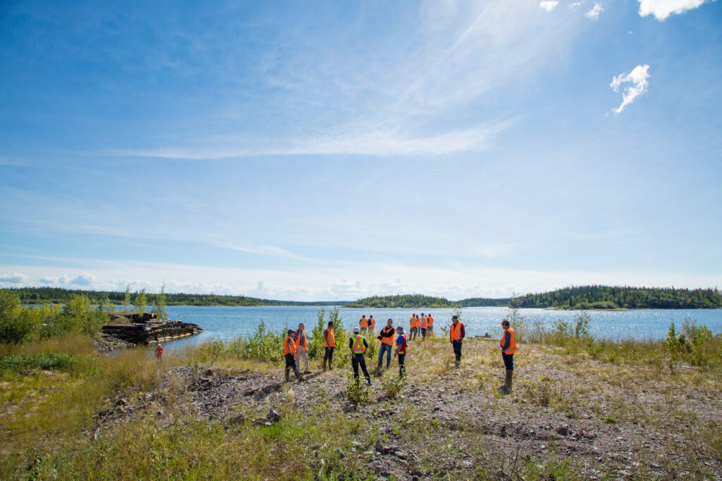 Community leaders tour the modern-day Gunnar Mine site. The facility operated from 1955 to 1963 and officially closed in 1964 with little to no decommissioning.
